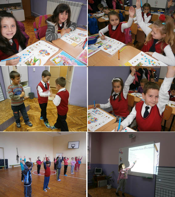 Започна учебната година. Вече сме ученици. В класната ни стая е приятно и уютно. Уроците следват един след друг. Букварчето е нашето първо другарче. Разказваме по картинките, припомняме си познати приказки, моделираме думи и изречения. Задачите по математика са много лесни. Пеем, рисуваме и играем. Всичко е толкова интересно!